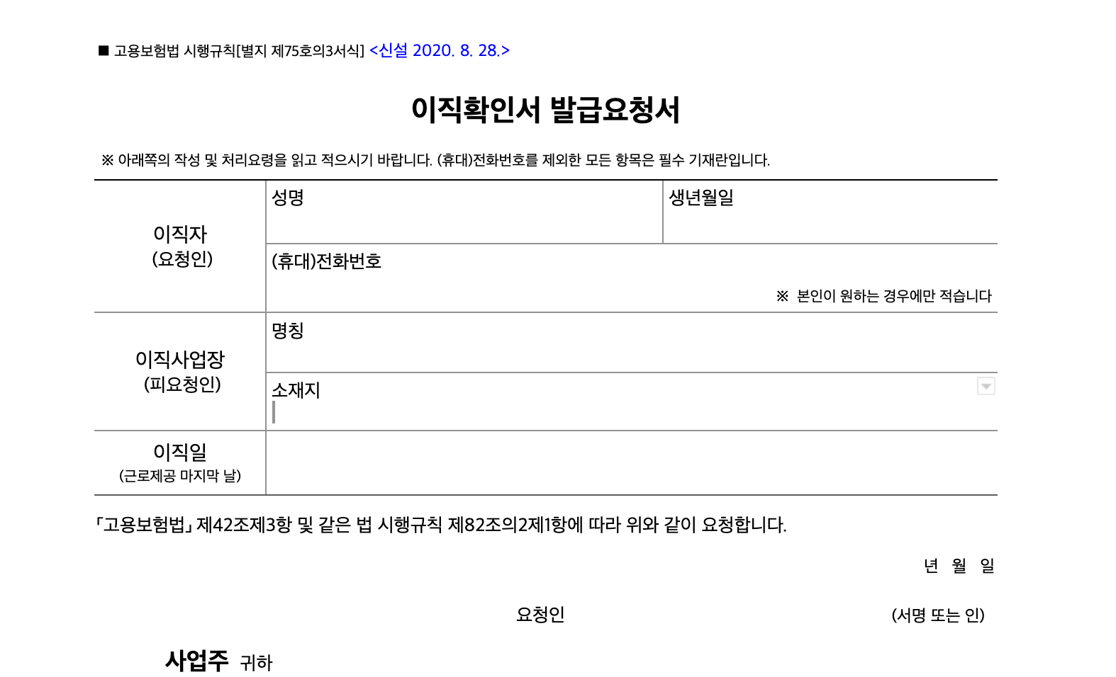 이직확인서 발급요청서는 한장만 작성하시면되고,