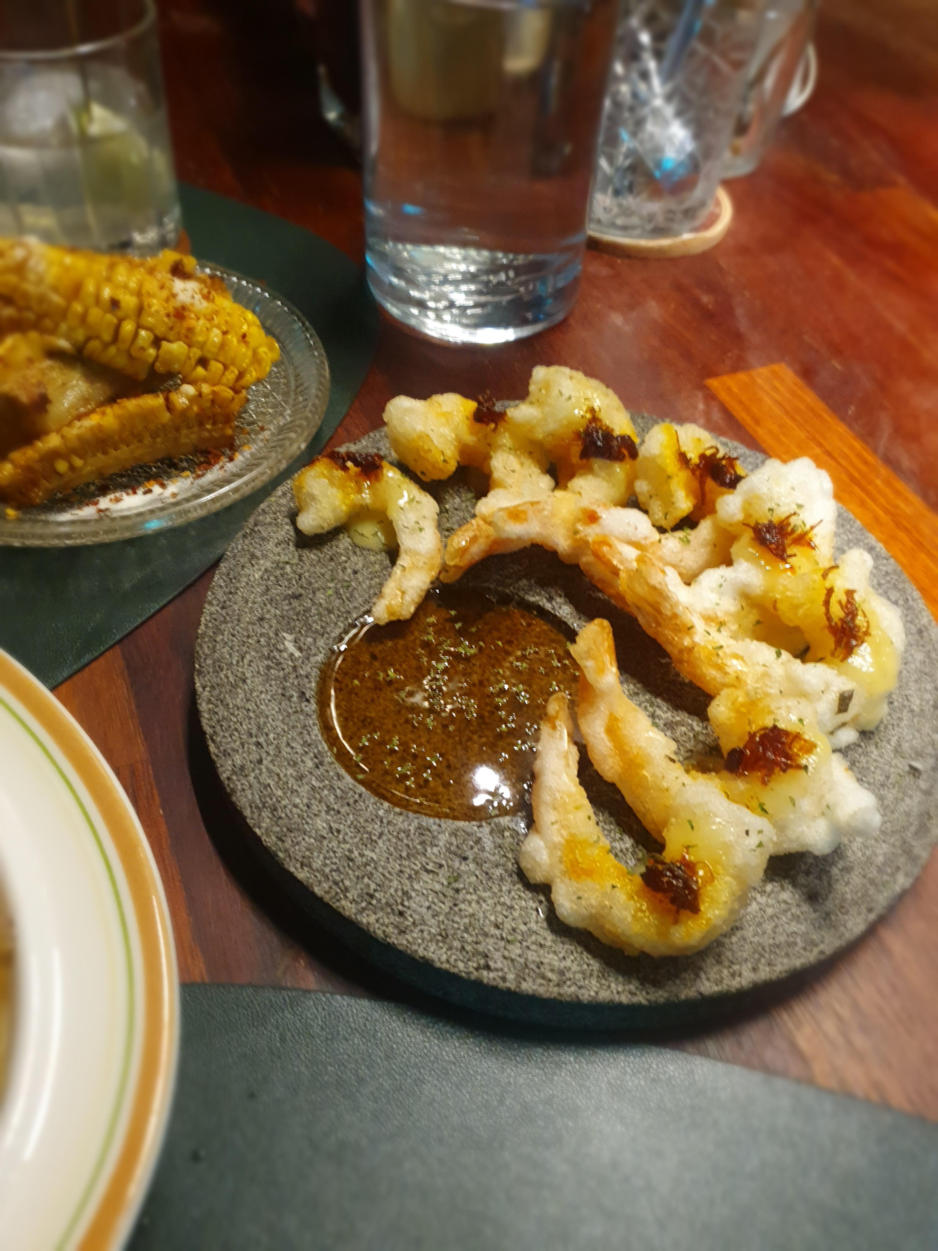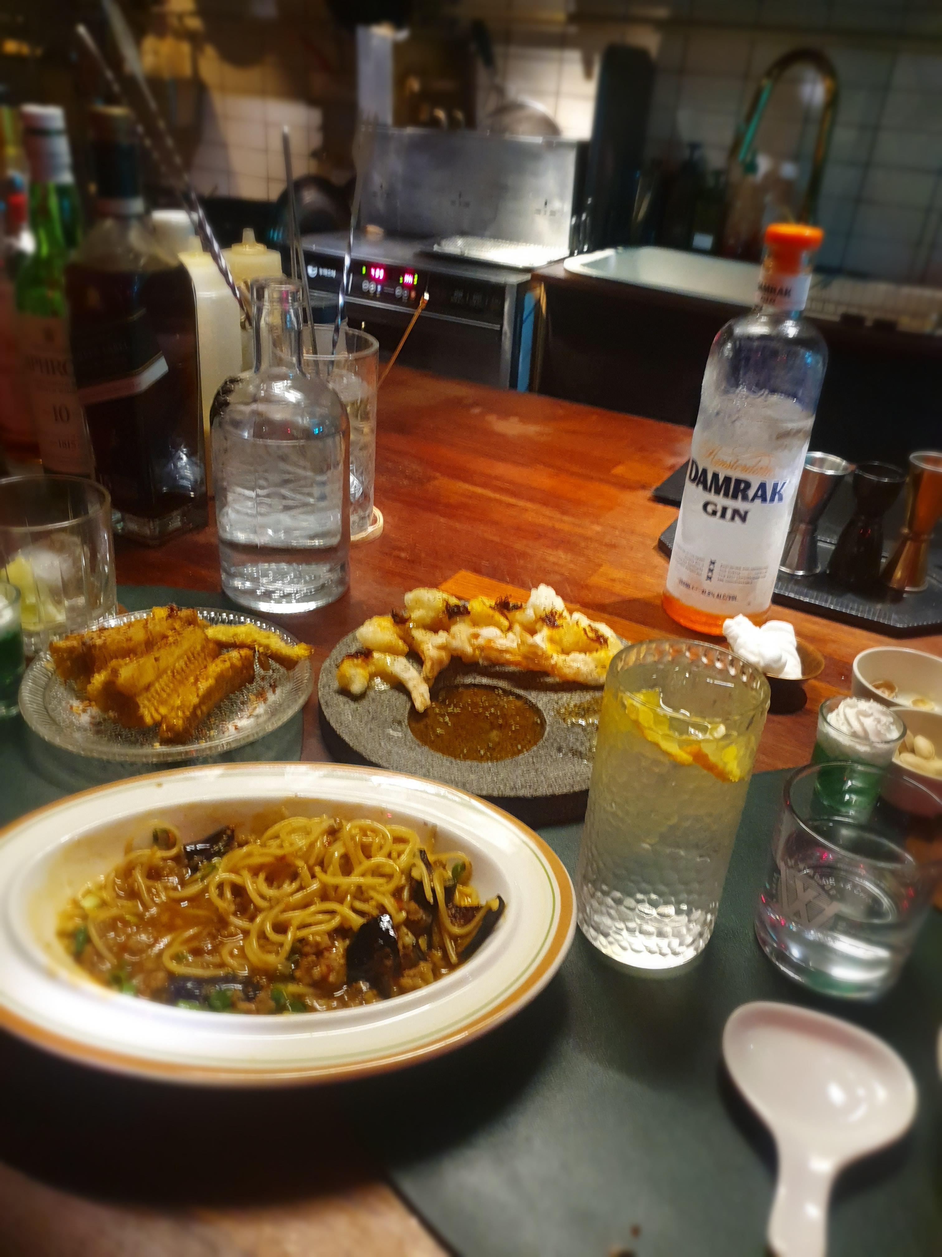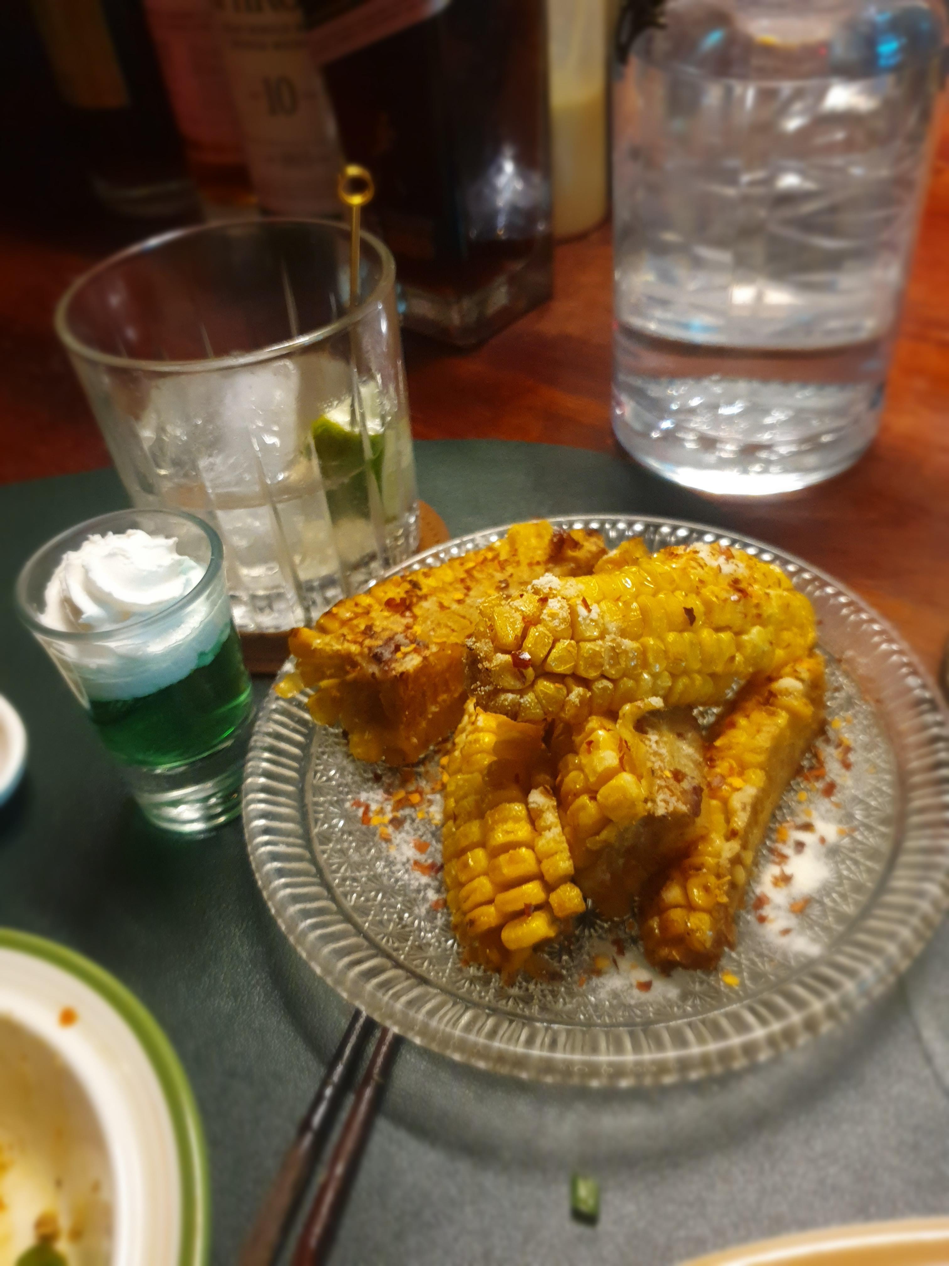 거의 대표작인 어향가지에 파스타 면 추가!!와 XO새우튀김, 이름은 기억 안나지만 술 안주로 제격인 구운 옥수수...
