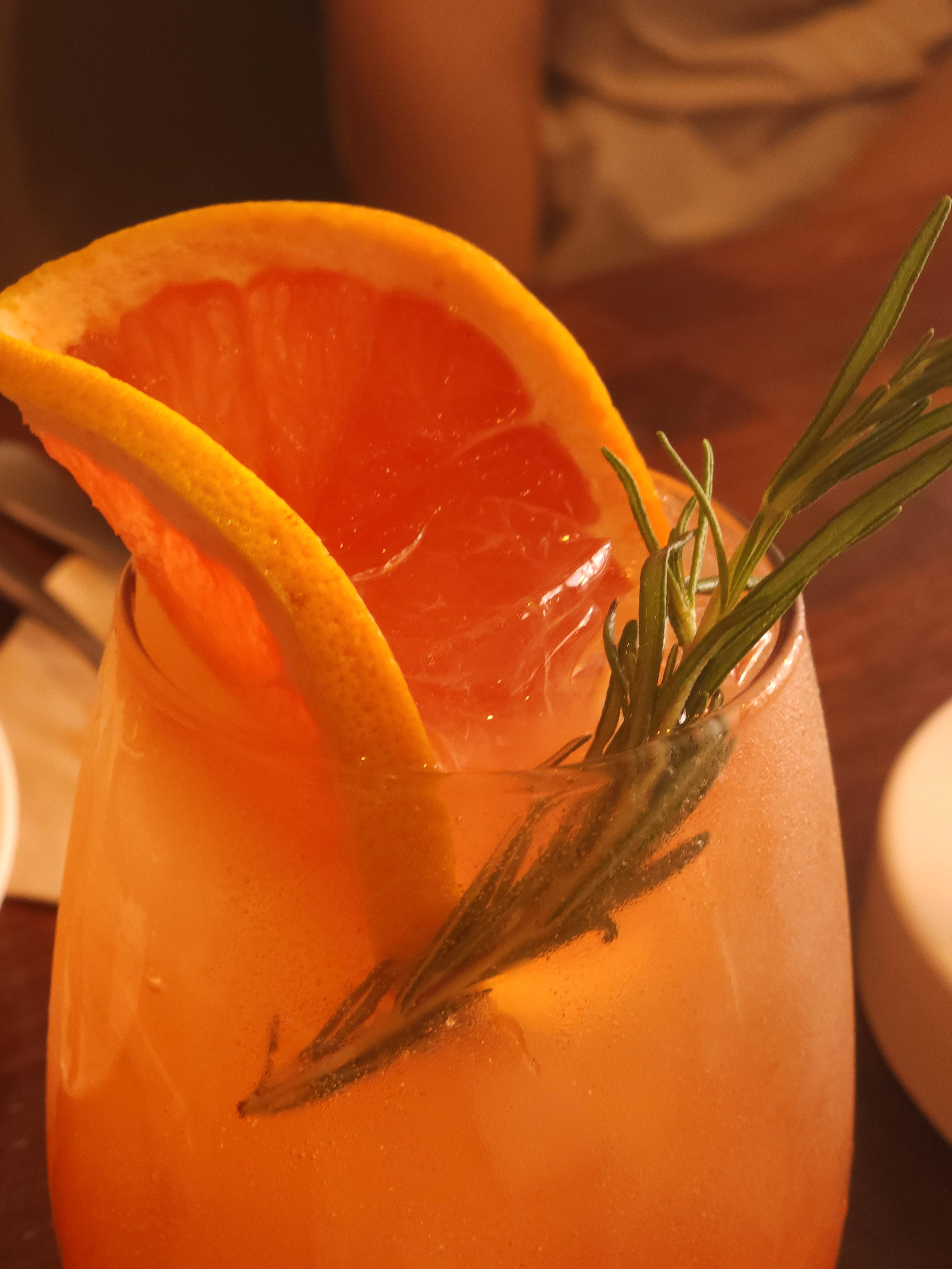 음료 테마별로 슬라이스와 로즈마리 가니쉬가 올라가